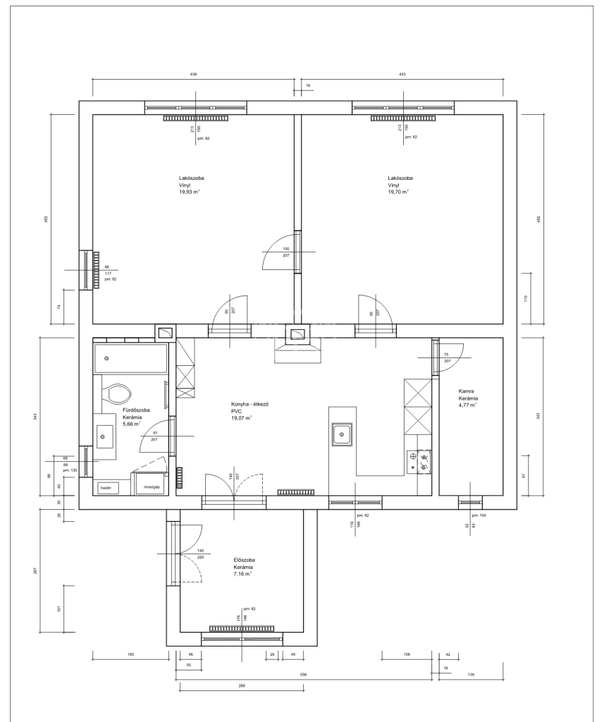 A ház 79m2 hasznos alapterületű, elosztását tekintve: