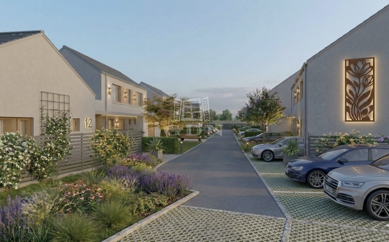 - 4 db földszinti lakás garázzsal + terasszal + saját kertrésszel.