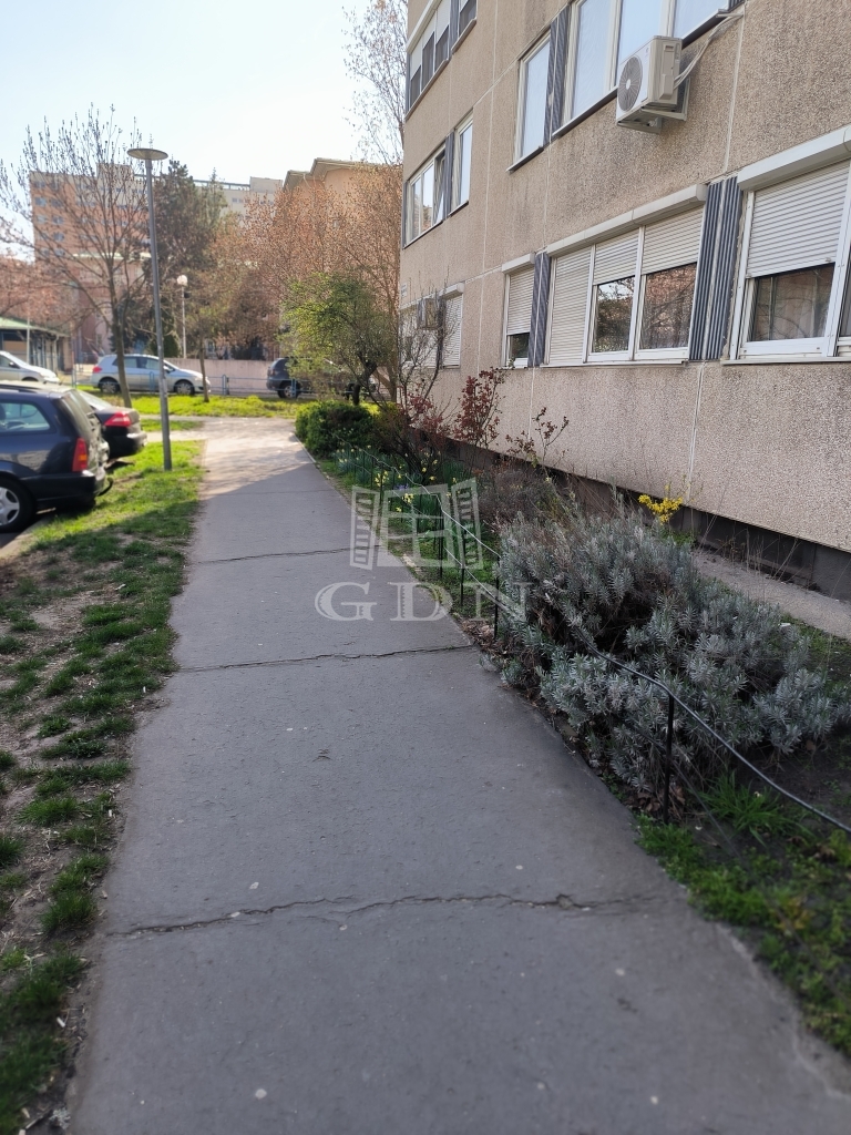 A lakás ablakai kertre nyílnak, a kilátás utcai, az épület bejárata előtt pedig kocsibeálló található.