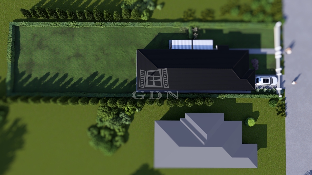 Három jól szeparált szoba biztosít privát teret minden családtag számára, miközben a nappali–étkező–konyha hármasa természetes központként működik. A WC és fürdő rugalmas kialakítása lehetővé teszi, hogy zuhanyzó vagy kád szerint alakítsd a teret, a garázs pedig nem csupán parkolást, hanem tárolást is ad. A nyugati tájolás és a 2,6 m-es belmagasság világos, levegős atmoszférát biztosít, ahol minden pillanat élménnyé válik.