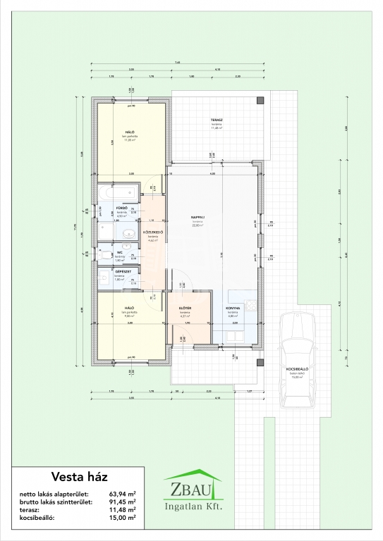 64 m2Alapterület 3 Szoba