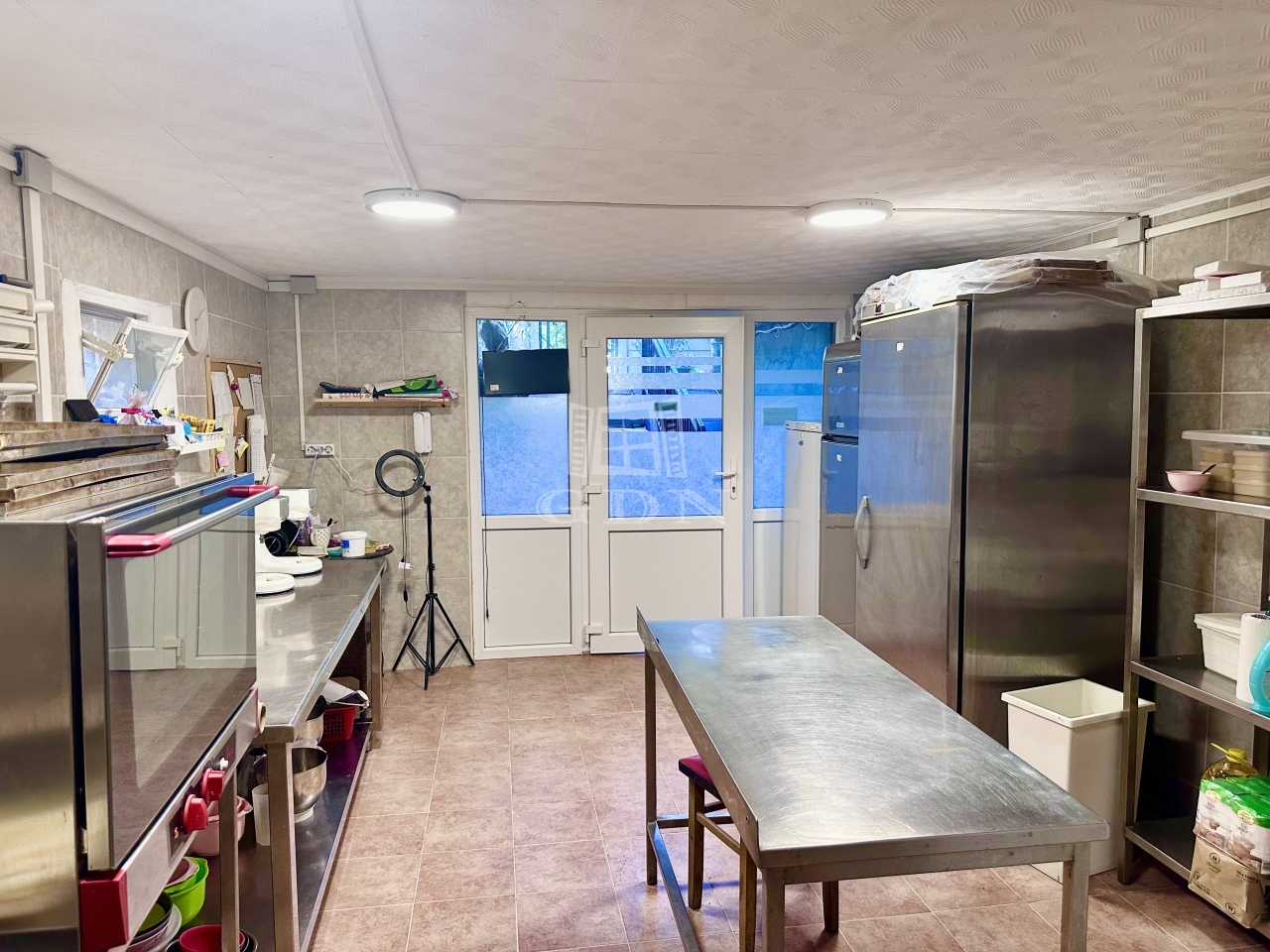 A szuterénben jelenleg is működő tortaműhely üzemel, mely 24 m2 és egy zuhanyzós wc helyiség is helyet kapott itt.