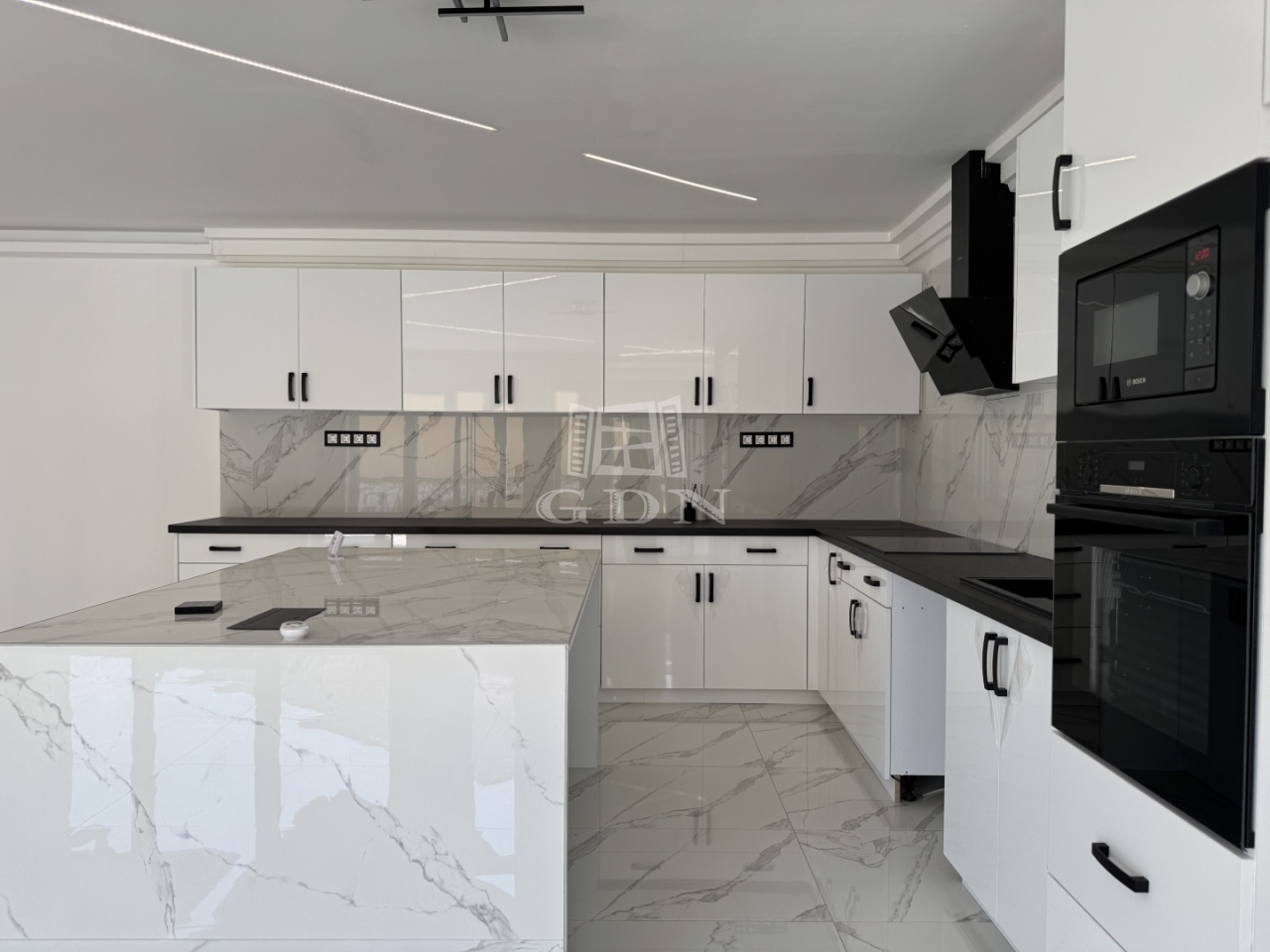 Egy gépesített, közel 50 m2-es amerikai konyhás nappali, egy szülői háló gardróbbal és fürdőszobával, kettő hálószoba, fürdőszoba, kazánház és egy nagyobb, mint kétállásos garázs lett kialakítva. A házhoz kapcsolódik egy 16m2-es fedett terasz is.