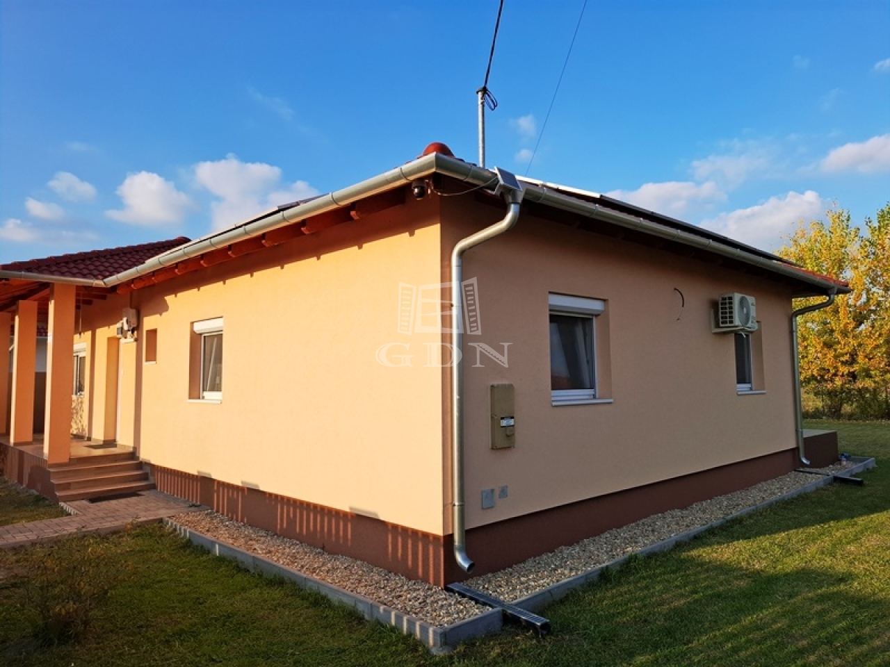 A nettó 104 m2-es családi ház 2018-ban épült, egy 700 m2-es összközműves telken, beton alapra, tégla falazattal, fa födémmel, cserépfedésű tetővel.