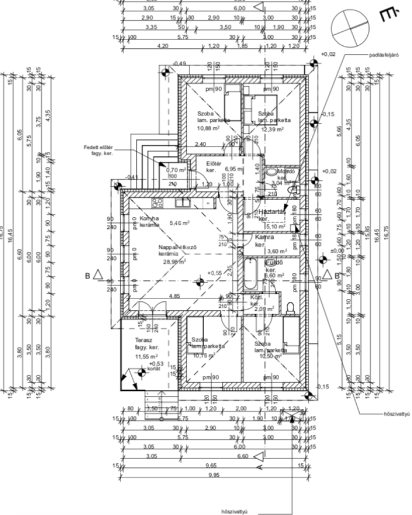 - 15 cm aljzat és 25 cm födém szigetelés,