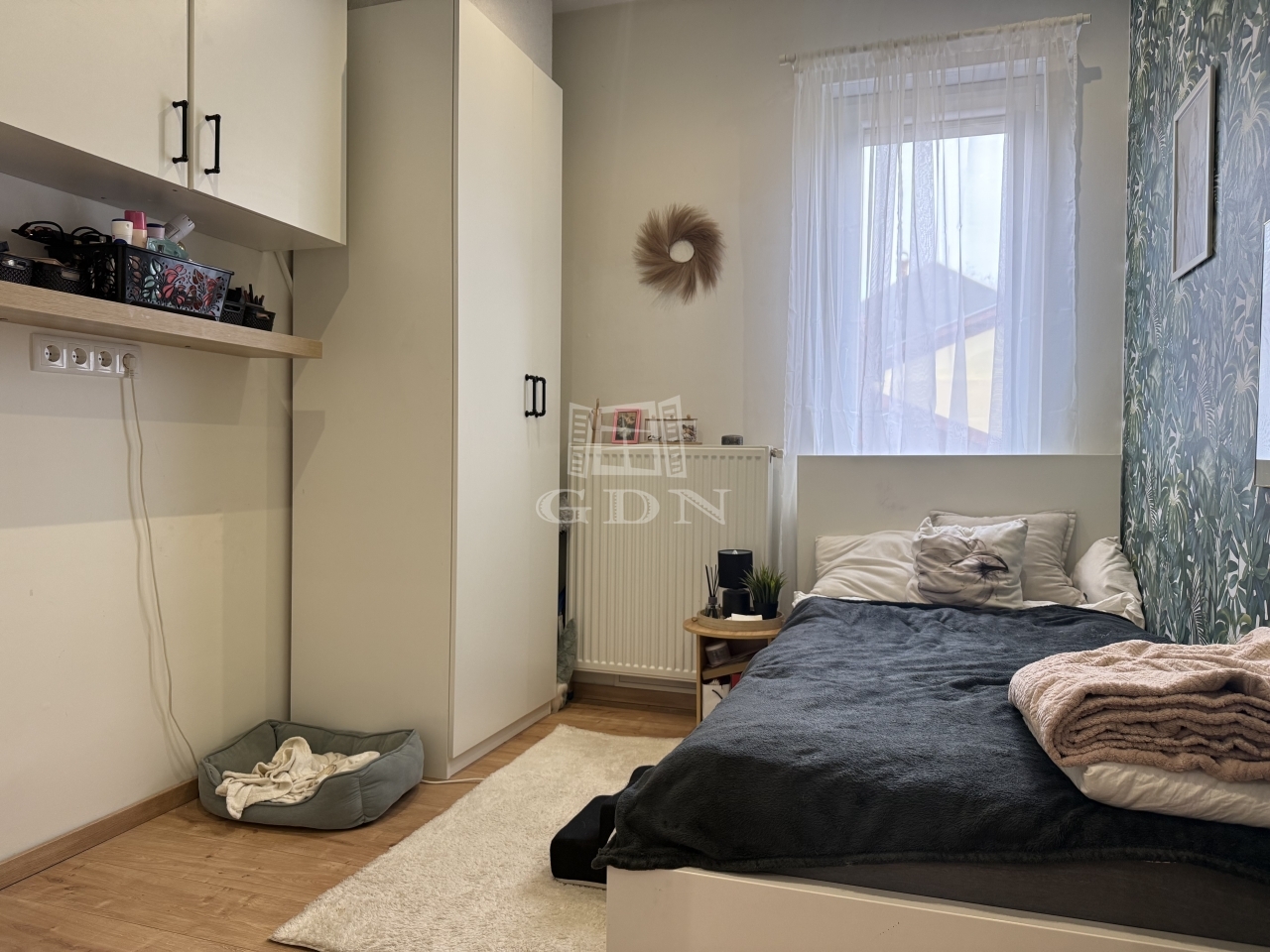 A lakás jó elosztású, világos terekkel rendelkezik: tágas nappali, két külön nyíló szoba (az egyik galériázott), külön WC és kádas fürdőszoba került kialakításra. A konyha egyedileg, asztalos által készített bútorral és beépített gépekkel felszerelt. Az ingatlanban két klíma található, a nyílászárók műanyagok, a burkolatok vízállóak. A bejárati ajtó egyedi gyártású. A lakás 2024-ben teljes felújításon esett át, melynek során a villany- és gázvezetékek is cserére kerültek.