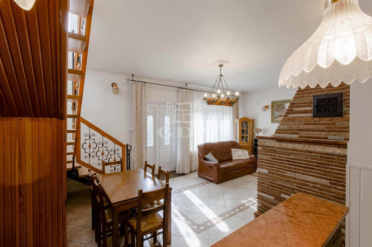 - Földszint: tágas nappali működő rusztikus kandallóval, étkező, konyha, fürdő, külön WC, műhely, garázs és pincelejáró.