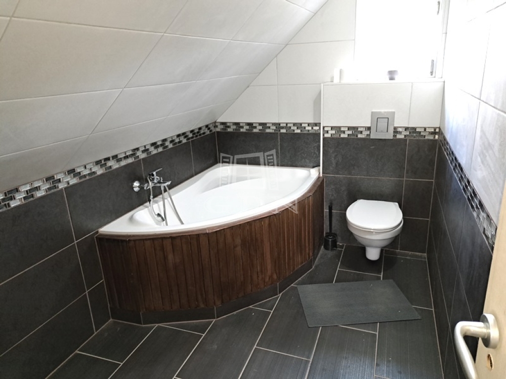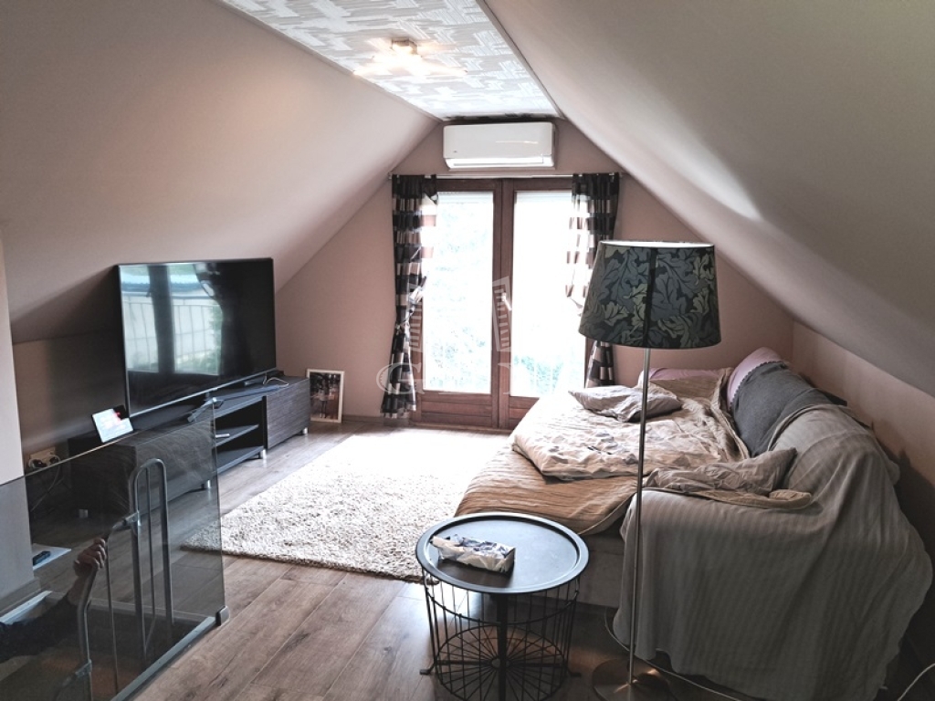A ház hasznos alapterülete 75 m2 két szinten, alsó szint 36 m2, a tetőtér 39 m2.