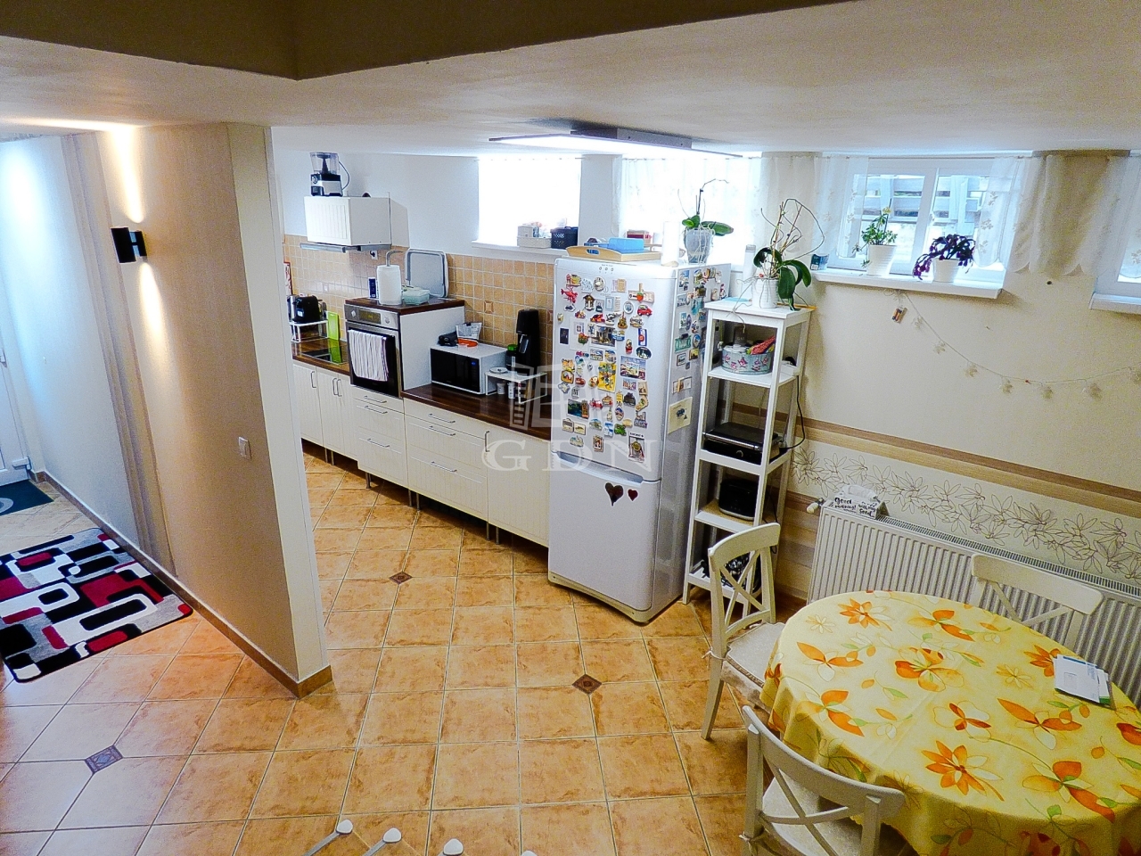 A kisebbik lakrész 35 nm-es, földszintes 1 szobával, fürdőszobával, konyhával nyerte el jelenlegi állapotát.