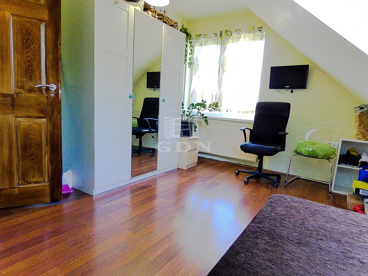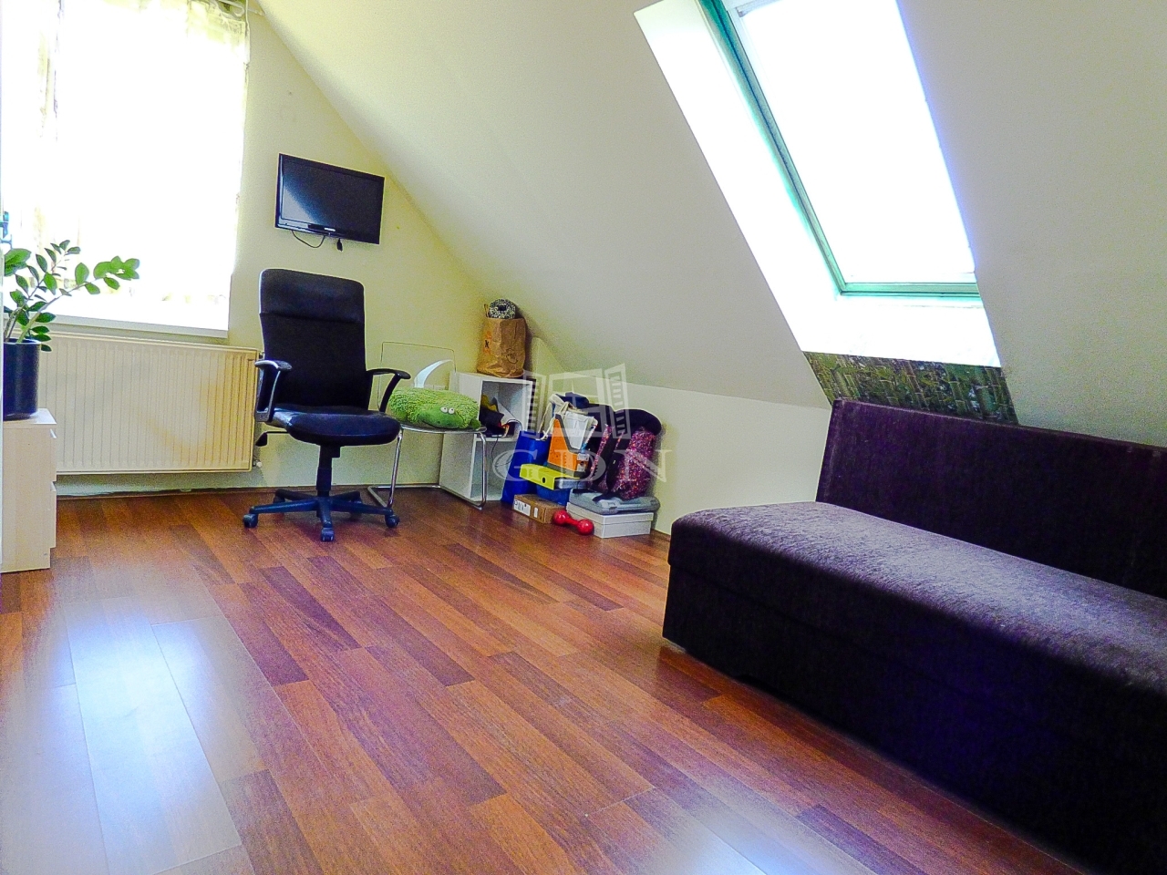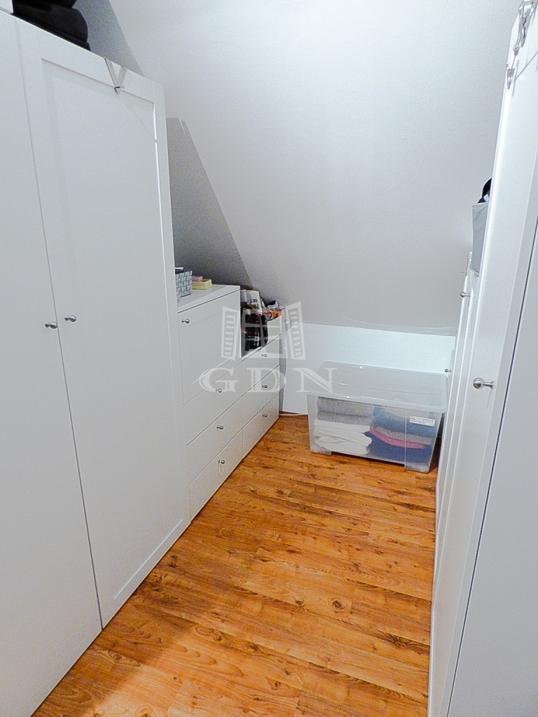 A nagyobbik lakrészen (110 nm) amerikai konyhás, étkezős nappali, 3 hálószoba, fürdőszoba, wc lett kialakítva két szinten.