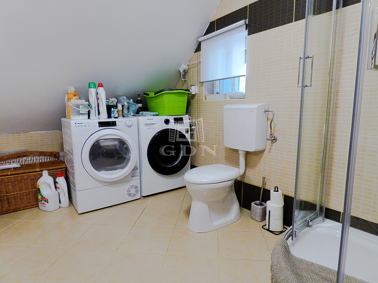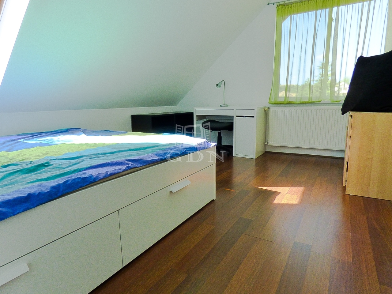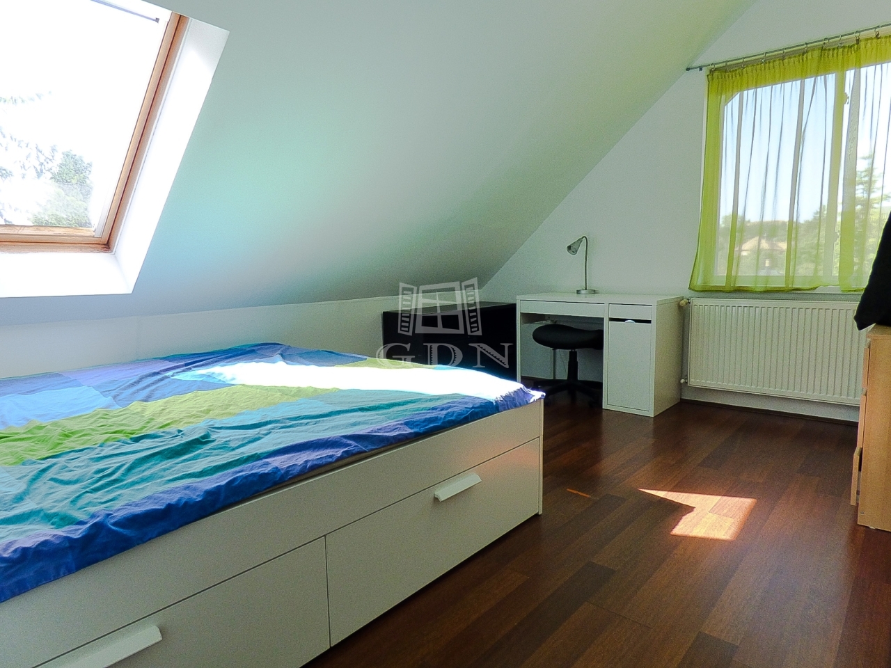 A nagyobbik lakrészen (110 nm) amerikai konyhás, étkezős nappali, 3 hálószoba, fürdőszoba, wc lett kialakítva két szinten.