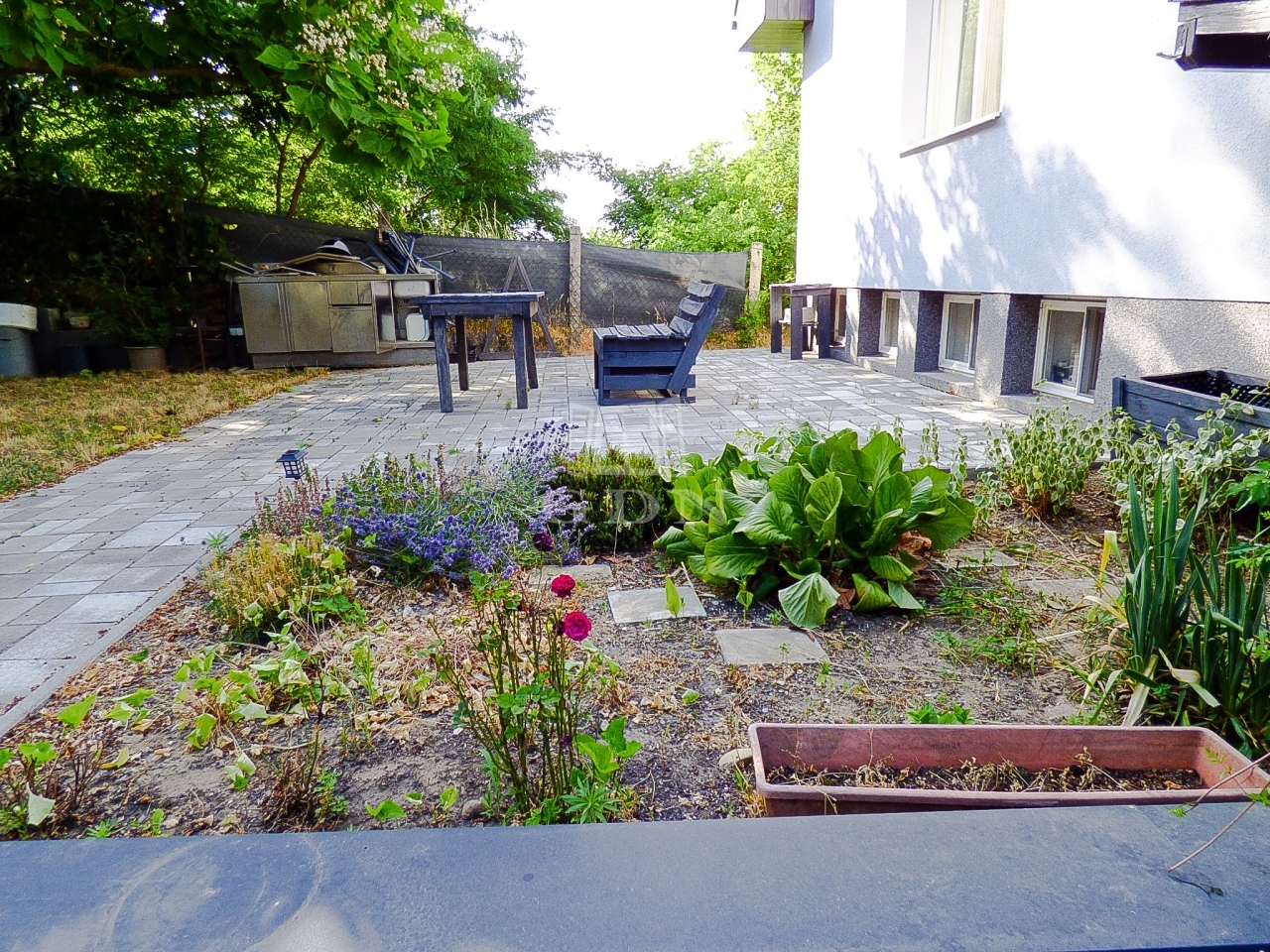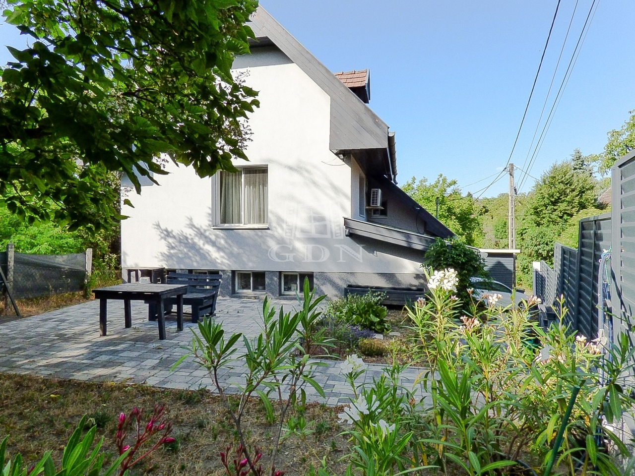 A zárt udvaron 2 autóval meg lehet állni, a kertben egy nagy terasz (25 nm), boros pince (8nm), tároló, bográcsozó kapott helyet.