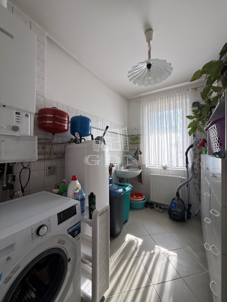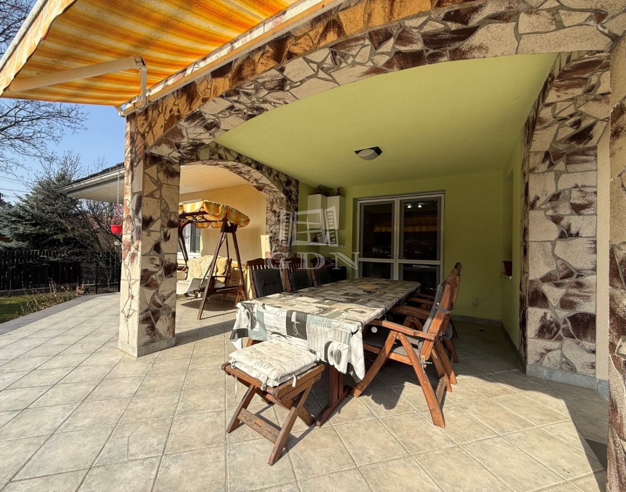 Az 803 m2-es önálló összközműves telken elhelyezkedő ingatlan 2004-ben épült, Porotherm téglából. Fűtése gázkazán radiátoros hőleadással. Nagy teljesítményű klímarendszerrel. Másodlagos fűtésnek a nappali közepén egy impozáns méretű cserépkályha található. Vastag falaknak köszönhetően a rezsiköltsége alacsony. A burkolatok magas minőségű kő és laminált padlóburkolat, mely az egész házat egyedivé teszi.