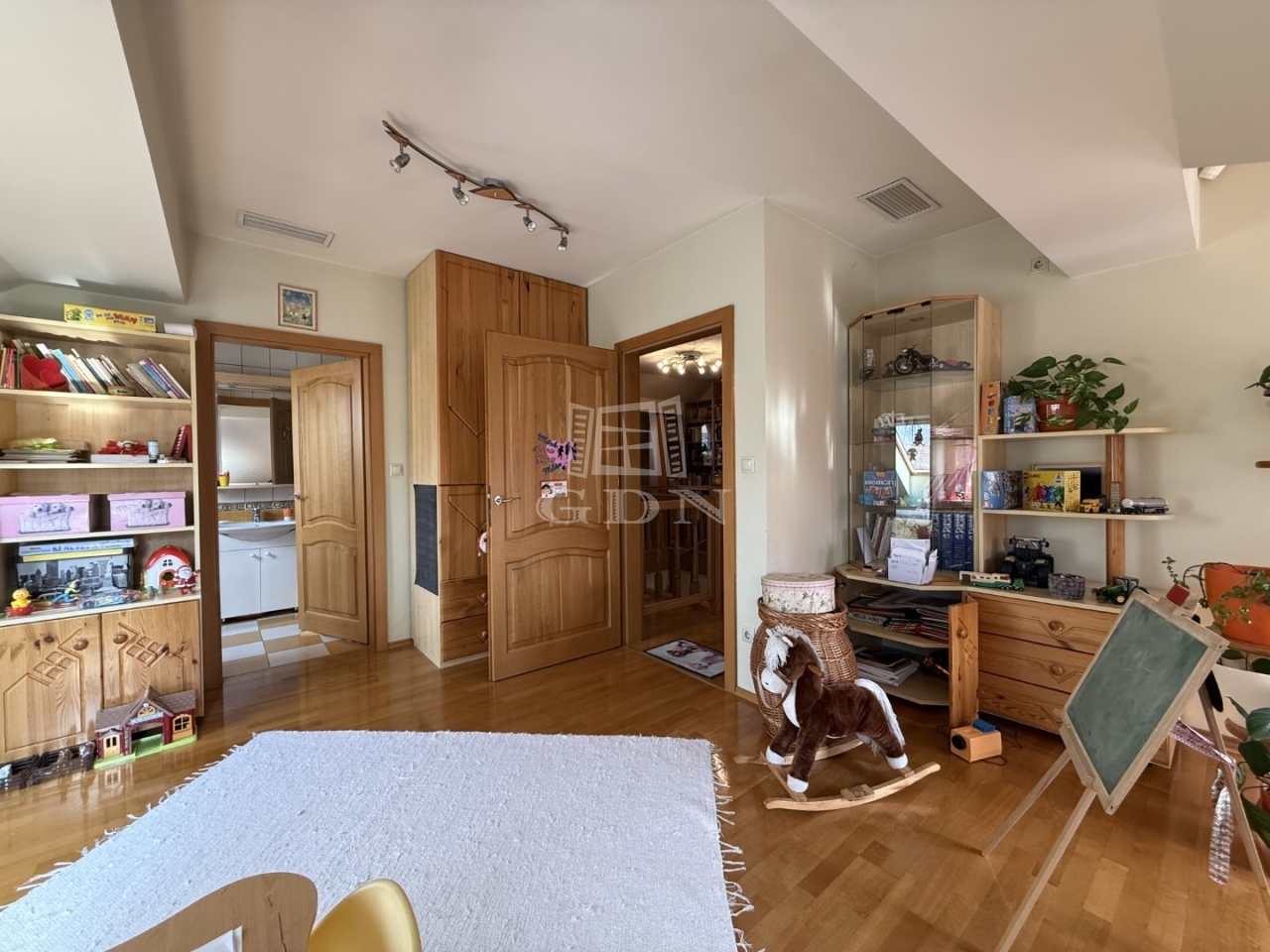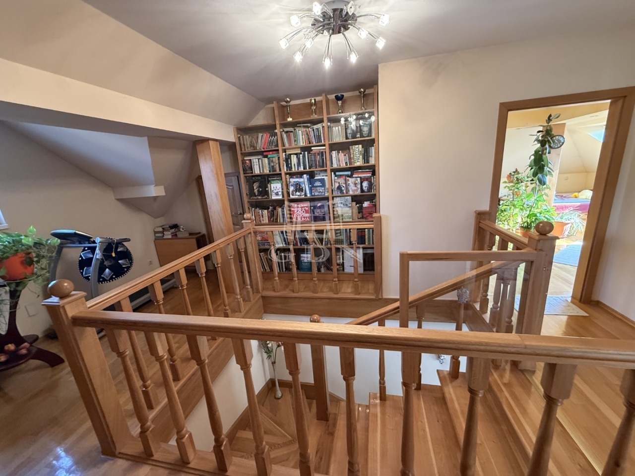 Tetőtér : A központi lépcsőn keresztül közelíthető meg. Itt helyezkednek el a további hálószobák, 2 hálószoba saját fürdőszobával, és gardróbbal rendelkezik.. A galéria másik feléről közelíthető meg a jelenleg tároló/ vendégszobaként funkcionáló + még 2 szoba.
