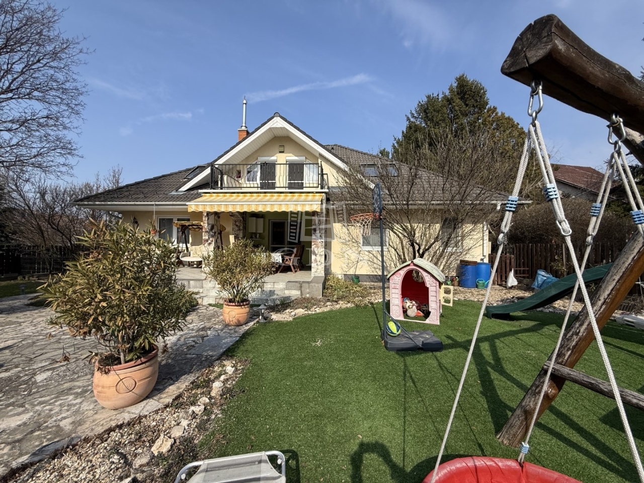 A kert szépen gondozott, parkosított. A hátsó telekrészen került kialakításra egy melléképület, kerti sütögető, gyermekjátszótér…..