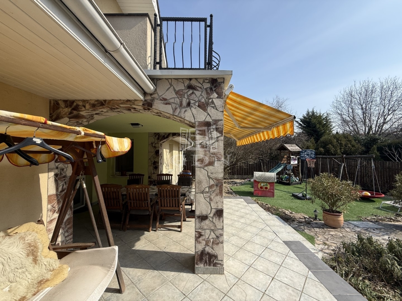 A ház 2 szintes, összesen 205 m2 hasznos lakótérrel, plusz egy 32m2 félig fedett terasszal, valamint egy 2 autó számára fenntartott 36,8m2 –es garázzsal, tárolóval rendelkezik.