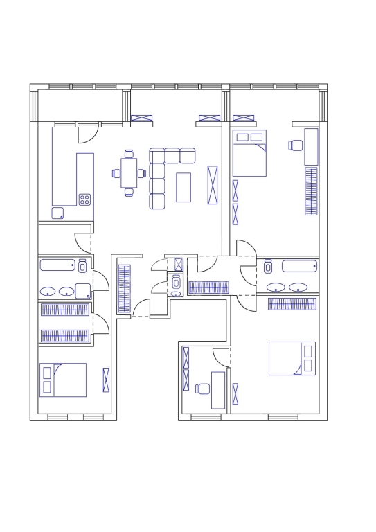 -Hálószobák:  a nappali két oldalán található a három különnyíló hálószoba. Emellett van egy kisebb szoba is, amely irodának vagy vendégszobának is tökéletesen használható.