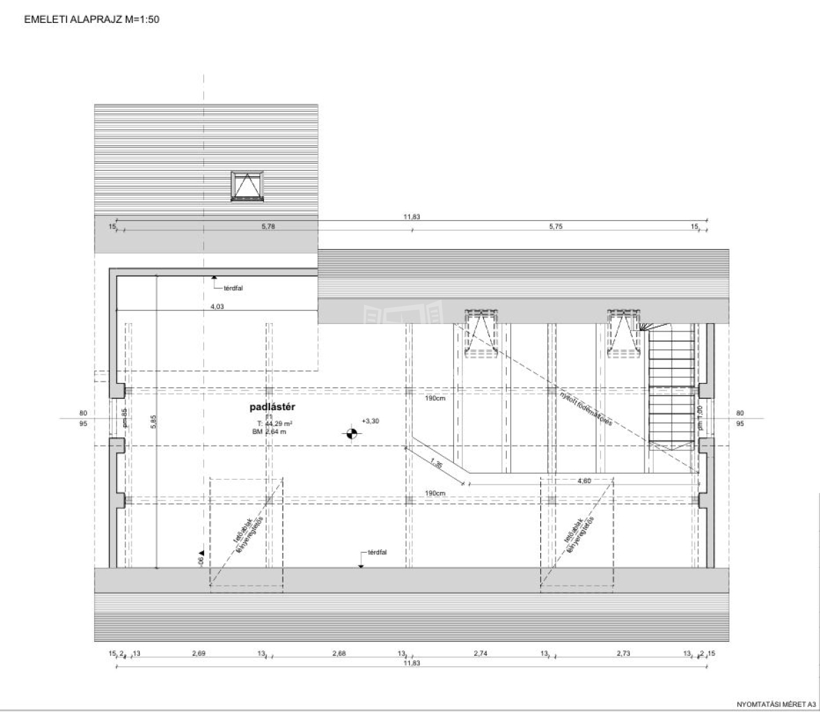 A pince fölött egy 125nm-es loft stílusú iroda található.