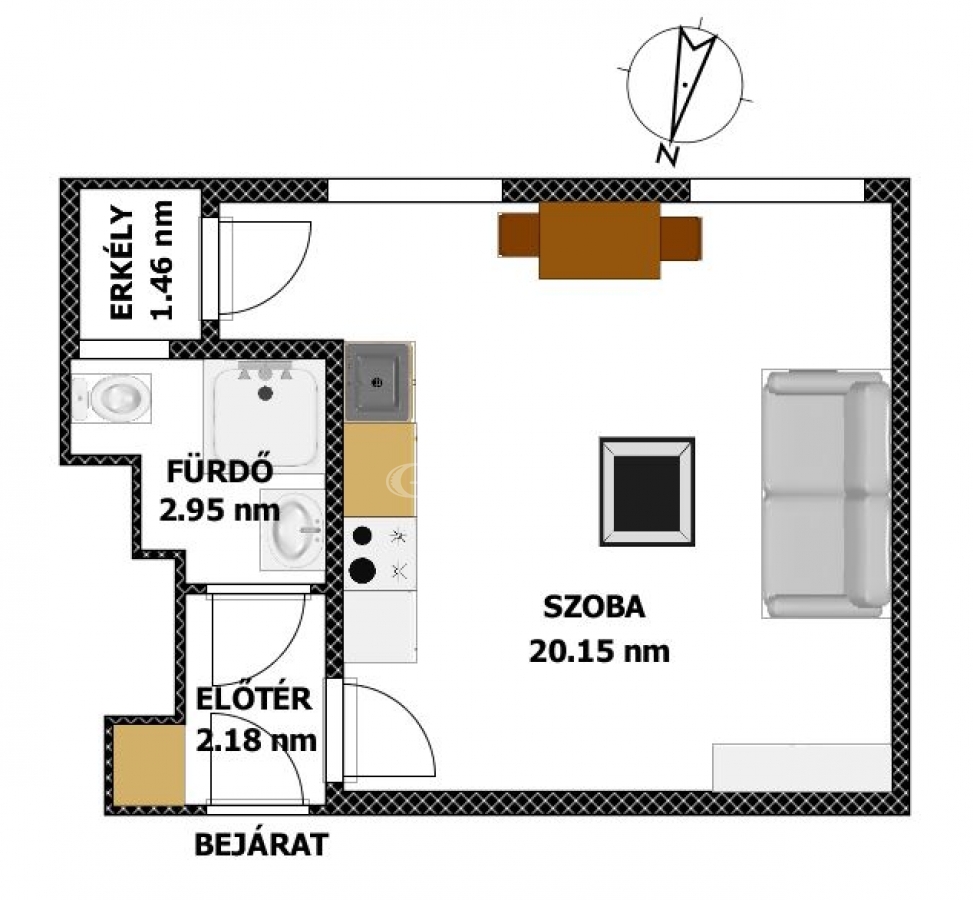 26 m2Alapterület 1 Szoba