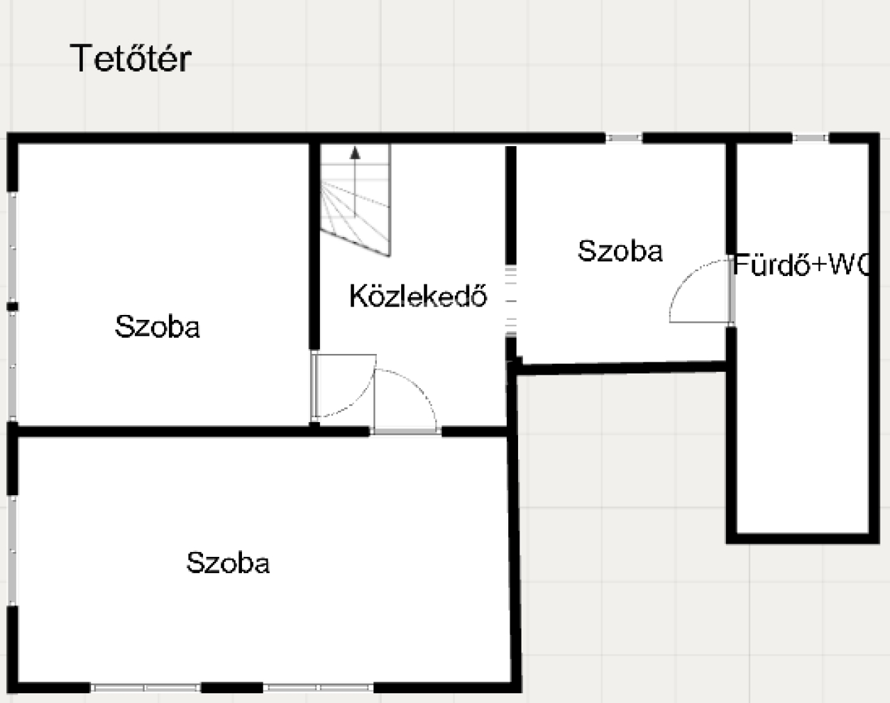 -Emelet: két tágas, valamint egy kisebb szoba, fürdőszoba toalettel,