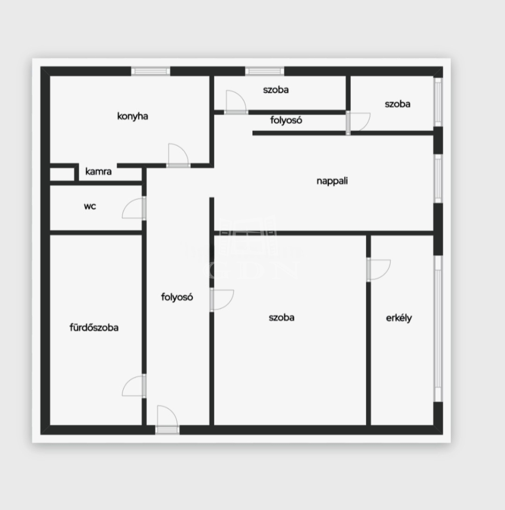 A lakás jó elosztású, két hálószoba és két félszoba biztosítja a kényelmes lakhatást.
