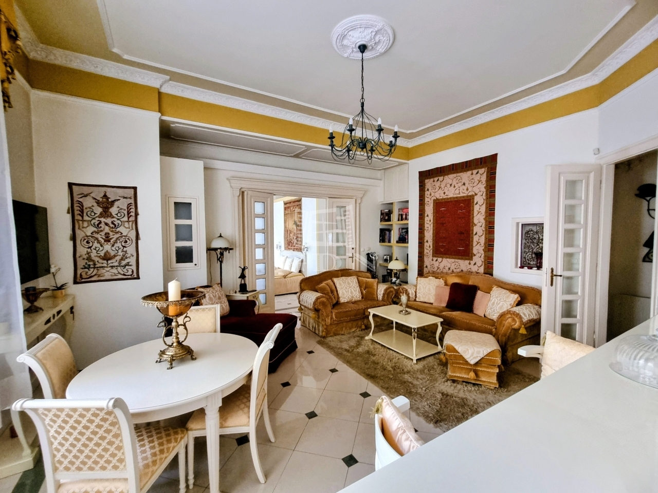 Az 1918- ban épült villa historizáló - eklektikus stílusban épült, az építész annak idején a házat saját magának tervezte, napjainkban folyamatosan karbantartott, állapot megőrzése, illetve javítása érdekében a társasház folyamatosan törődik vele, pályázatokon indul! Eladó ingatlanunk a magasföldszinti szinten helyezkedik el, (alaprajzon a lilával körbejelölt) egyik különlegessége, hogy a házba egy tekintélyes 33 nm-es külső teraszról jutunk be, majd a lakást egy zárt lépcsőházból közelíthetjük meg, ami a szomszéd ingatlannal kizárólagos használatban van.