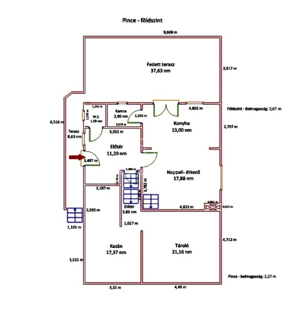 Az ingatlan részben alápincézett, ahol a gépészet is található. Főtése gáz cirkó kazán, de inverteres klímás is felszerelésre kerültek.
