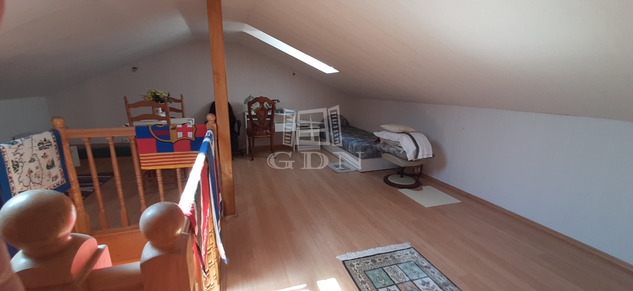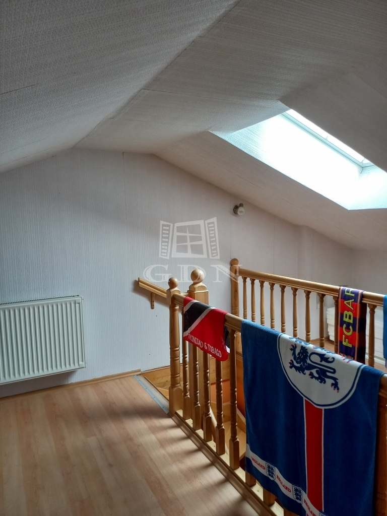 - önálló lépcső vezet a felső, parkettázott, tetőablakokkal ellátott manzárd részbe