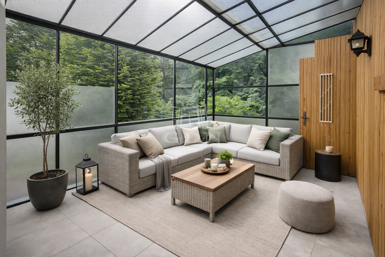 -fedett üveges terasz 10 m2.