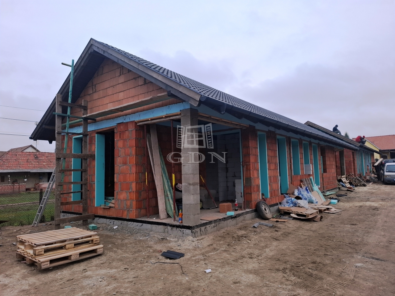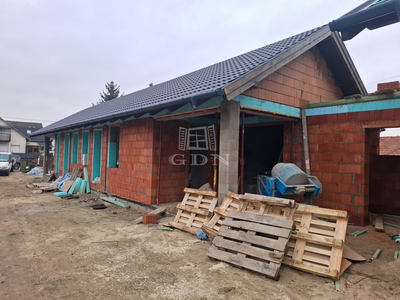 Az otthon beton alapra, tégla falazattal, fa födémmel, beton cserép fedéssel épül meg.