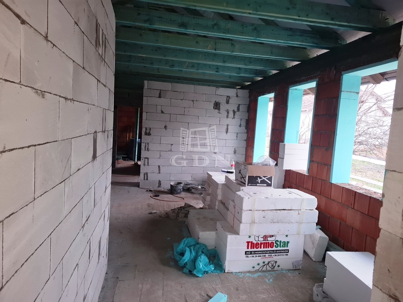 A homlokzaton 15 cm Dryvit rendszerű, a födémben 25 cm fújt hőhíd mentes, míg a padlóban 10 cm lépésálló nikecell szigetelés kerül beépítésre.