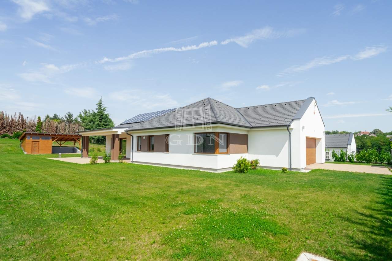 Az ingatlan aszfaltozott magánútról nyílik, lakóparki környezetben, csendes, nyugodt utcában, közel a természethez, körbekerített, automata kapuval ellátott, igényes külső-belső megjelenésű, letisztult stílusú.
