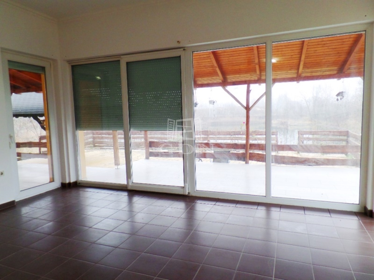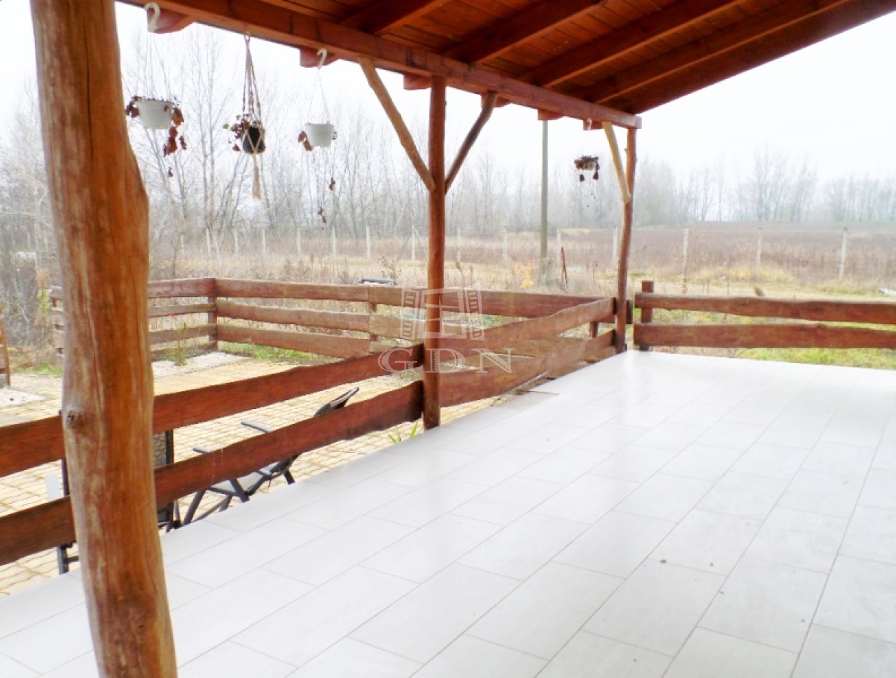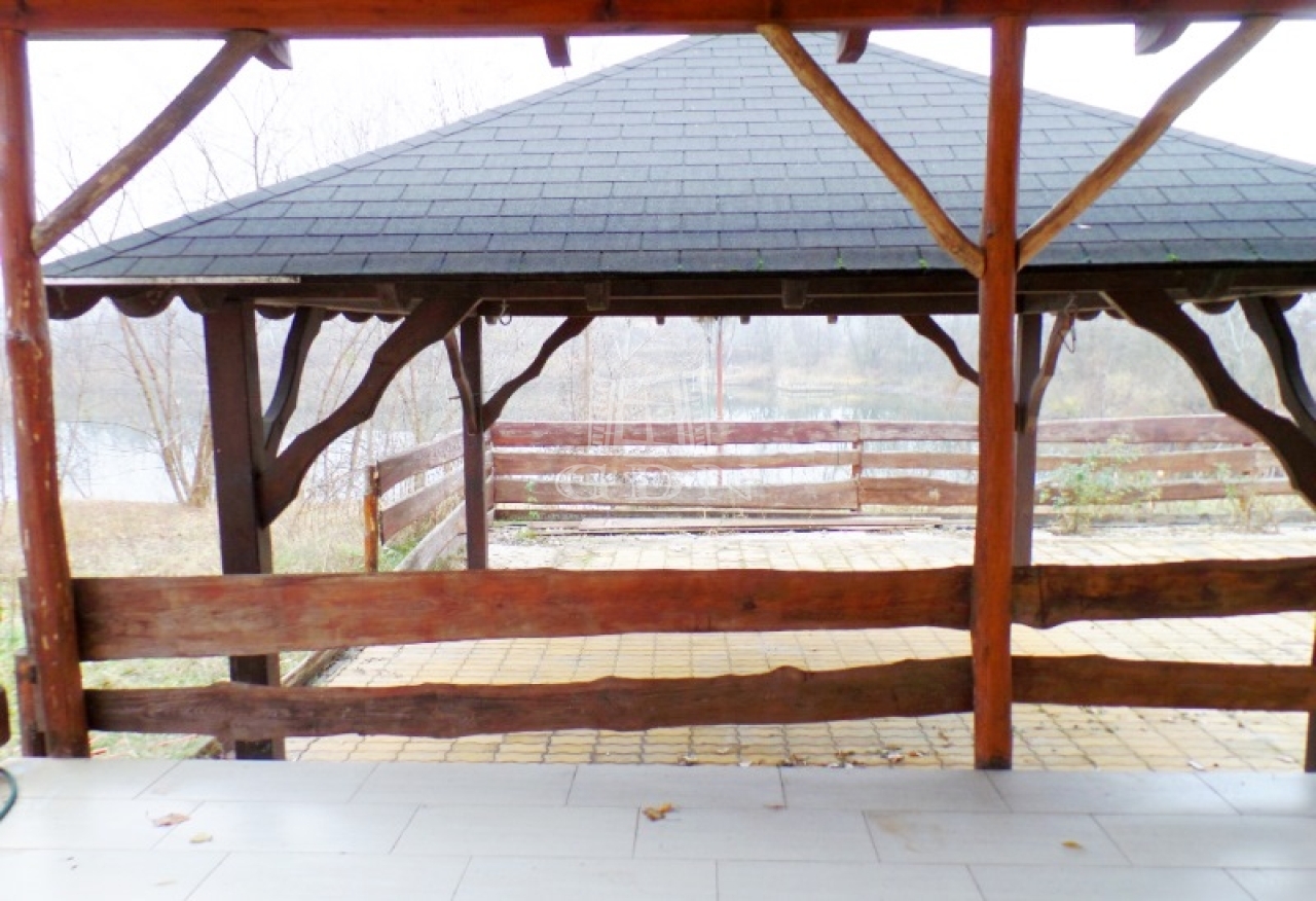 A ház közvetlenül a tó partjára épült, a szobák terasz kapcsolatosak és vízre panorámásak. A halastó mérete közel 1 hektáros. A ház körüli 300m2 terület viacolorral burkolt. Több melléképület is található a területen, valamint 4 autó részére kialakított fedett autóbeálló. A terület kerítéssel körbekerített, elektromos kapuval rendelkezik.