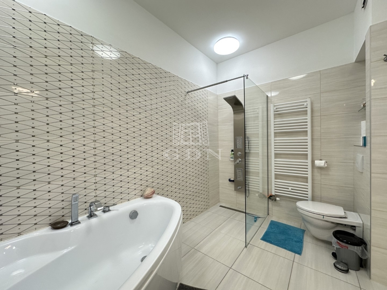 A lakás dupla komfortos, 3 hálószobával, külön mosókonyhával, vendégmosdóval, valamint exkluzív fürdőszobával: sarokkád, walk-in zuhanyzó, dupla mosdó, WC.