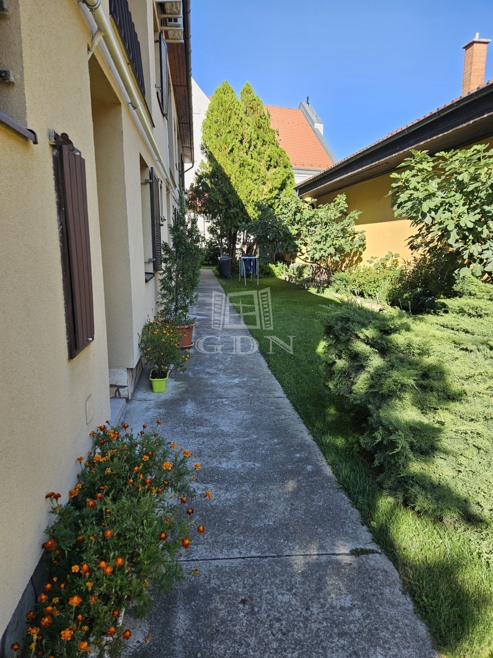 Az épület körbejárható. A lakások szépen gondozott saját előkerttel, közös oldalkerttel, fúrt kútról működő locsoló hálózattal, valamint több autó számára biztosított beállási lehetőséggel rendelkeznek.
