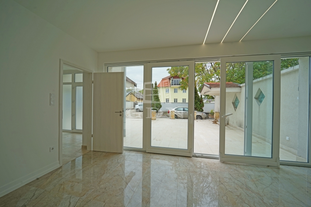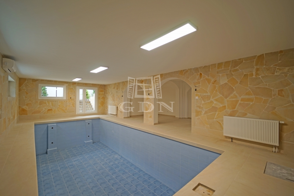 Budapesten a XVII. Kerületben a Pesti útról nyíló 848m2-es telken, eladó egy nettó 523m2-es 7 szoba + 2 nappalis, fűthető belső medencés, háromszintes luxus családi ház.