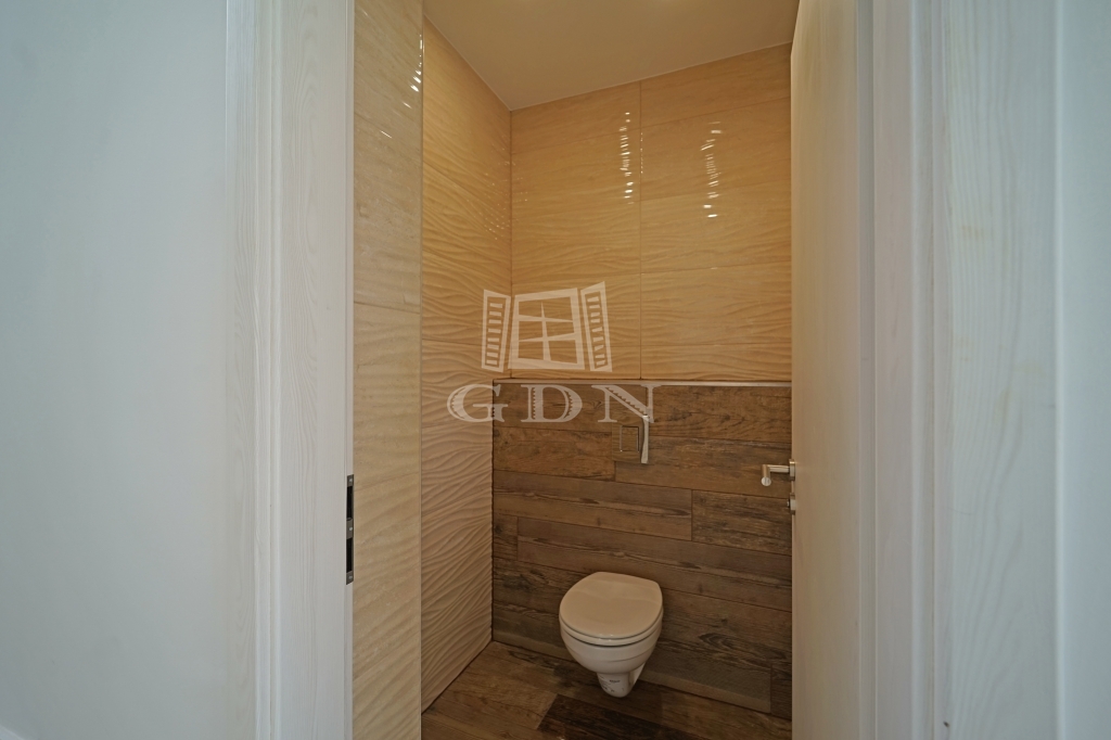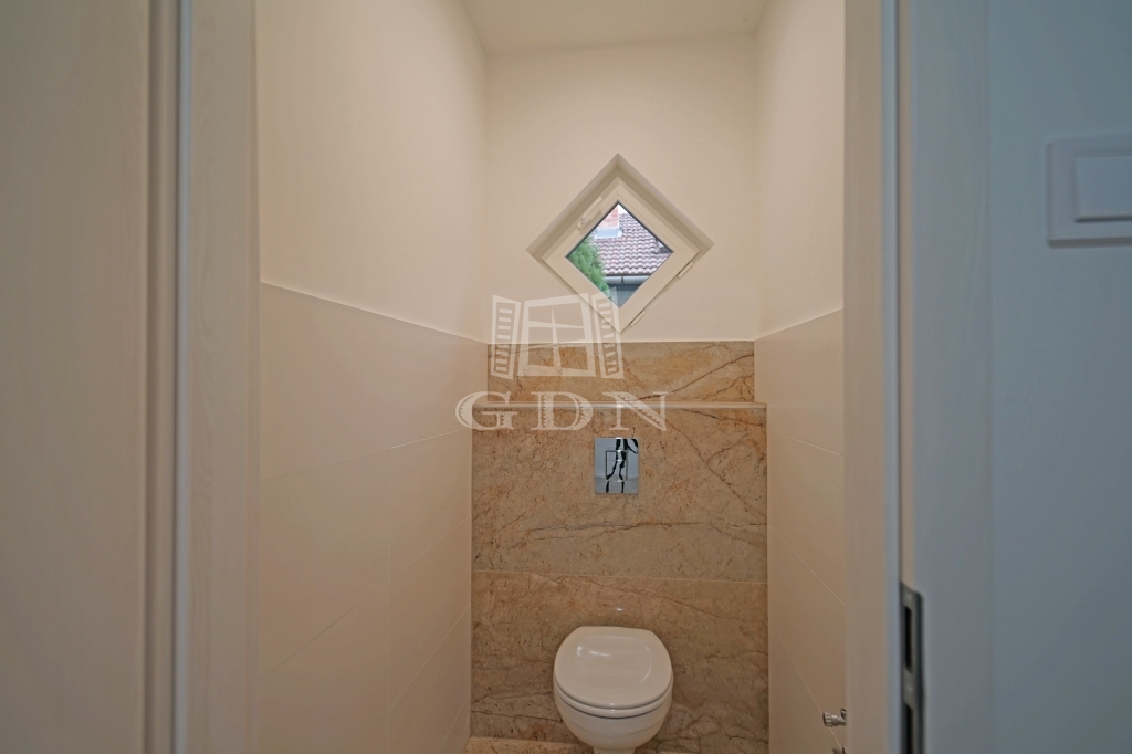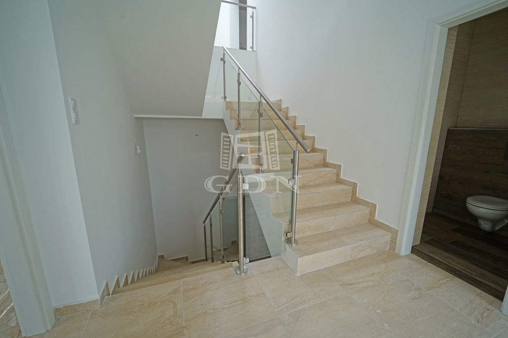 A minőség fontos szempont volt a kilakításnál, a földszinten a padlót 60x120-as márvány lapokkal burkolták, a lépcsőház korlátai rozsdamentes acél és üveg kombóval készültek, a három fürdőszoba szaniterei, bútorai és csaptelepei az Arezzo Design termékeiből lettek ízlésen kiválasztva.