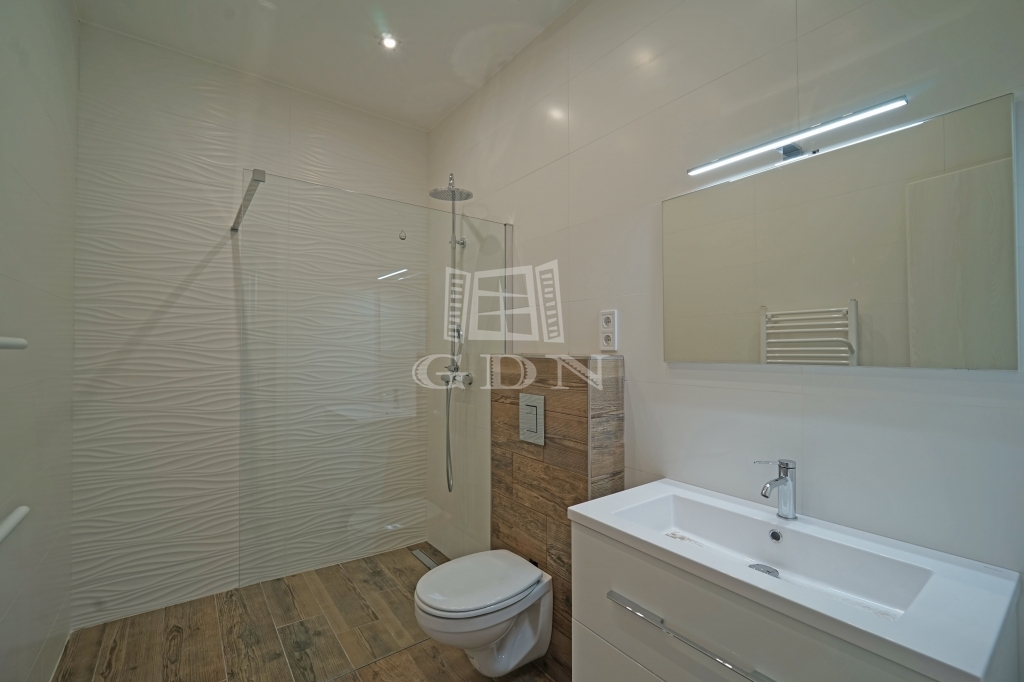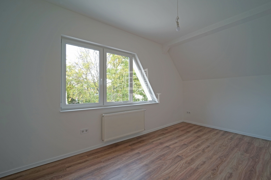 Nyeles telek révén a Pesti úttól az ingatlan 60 méterre helyezkedik el, így a zajterheléstől és a kíváncsi tekintetektől is távol van az élettér.