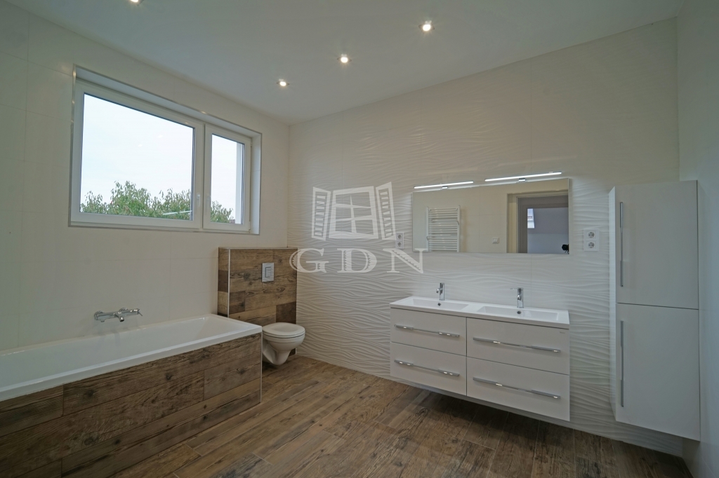 A homlokzatok dryvit szigeteléssel lettek ellátva, a thermo nyílászásók három rétegű üveggel szereltek.