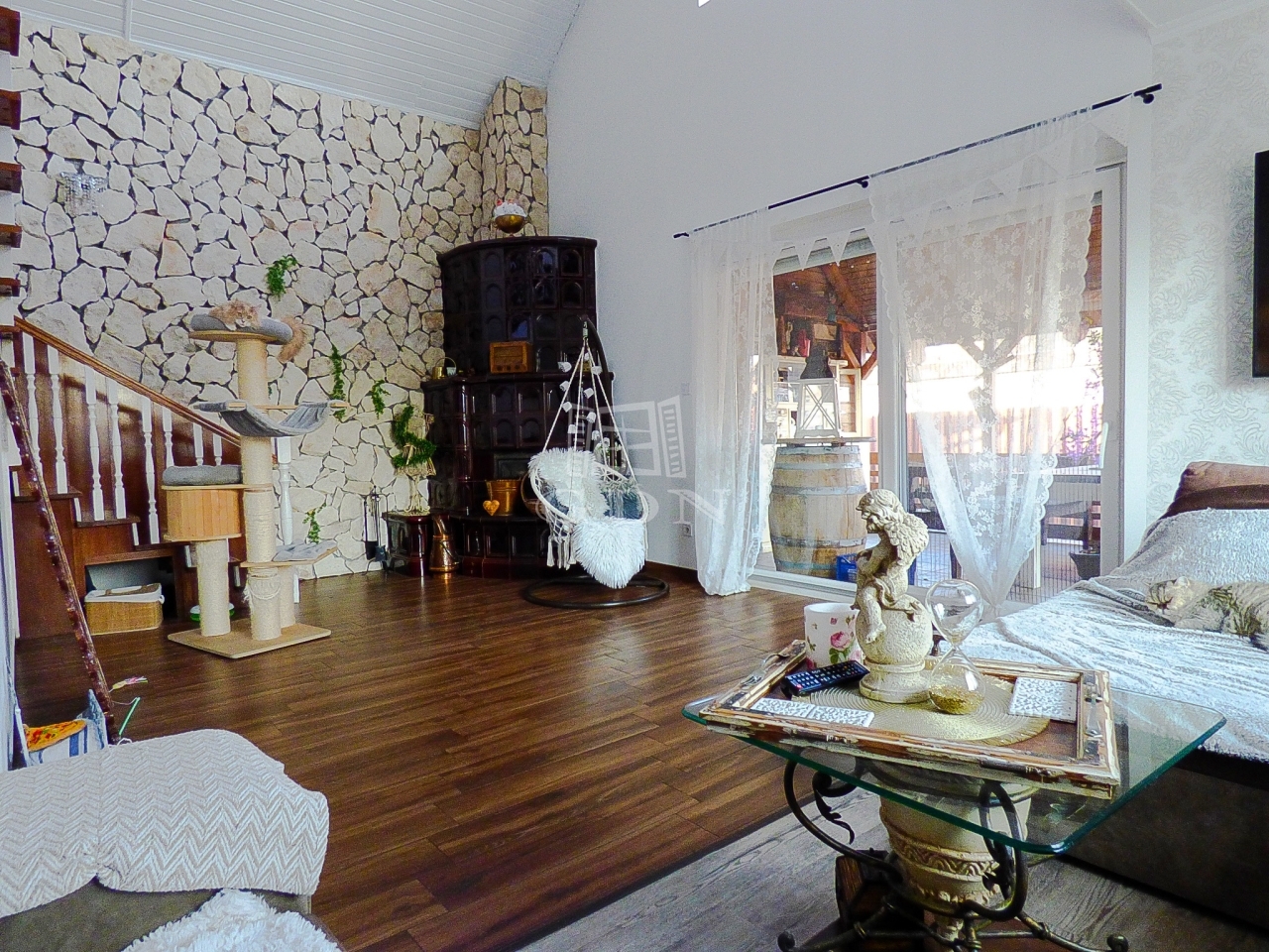 Vecsés Felsőhalom részén, csendes mellékutcában, 1998-ban épült, 370 nm-es önálló telken lévő, bruttó 227 nm-es (70 NM-ES PINCE + GARÁZS + 14 nm IRODAHELYISÉG) , 3 szintes, vasbeton födémes, szigetelt (10 cm dryvit), 4 szobás, felújított állapotú, gáz cirkó (kondenzációs, Bosch), - cserépkályha fűtéses, hűtő fűtő klímával, riasztóval felszerelt, thermo nyílászárós (redőnnyel), Dél - Keleti fekvésű, tehermentes családi ház eladó.