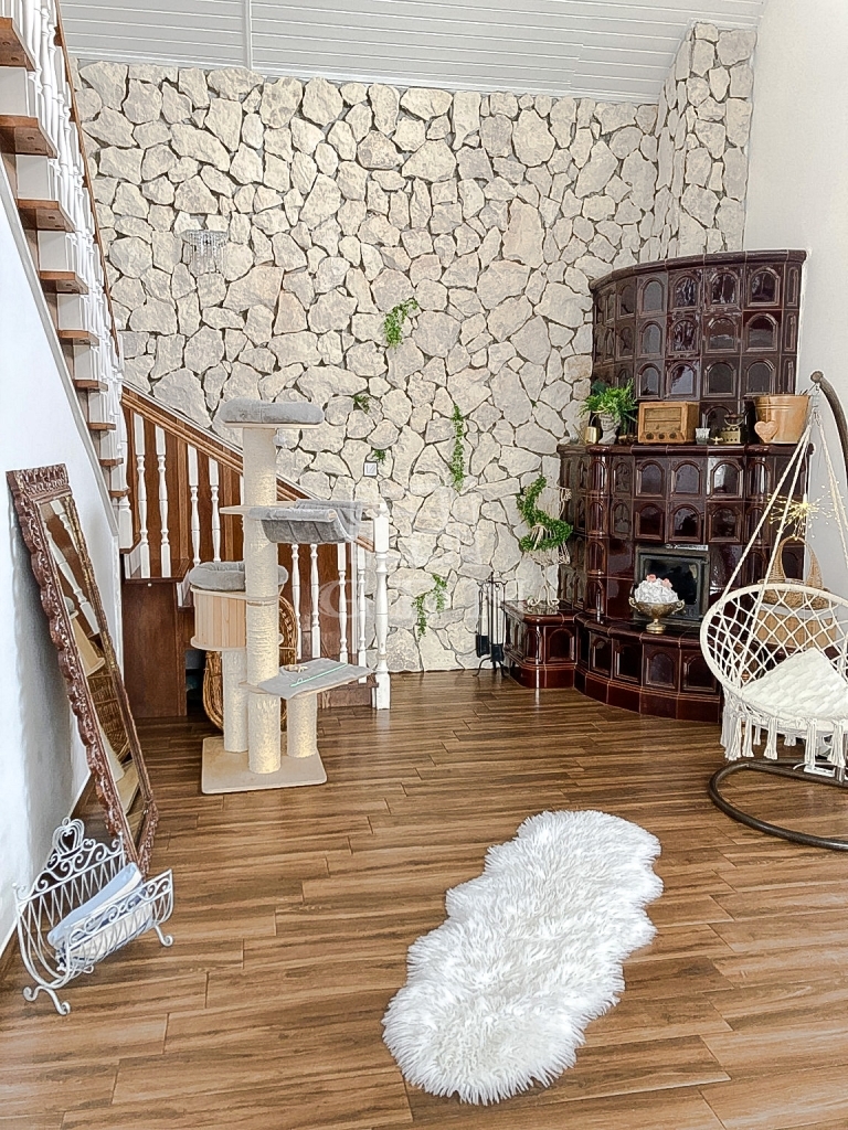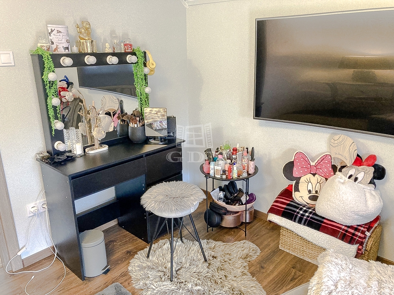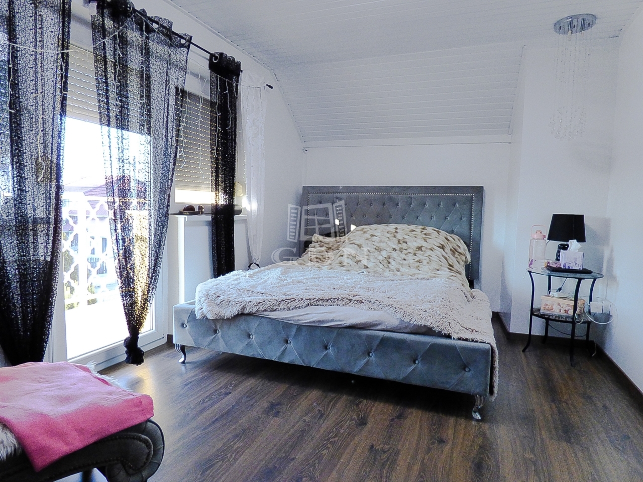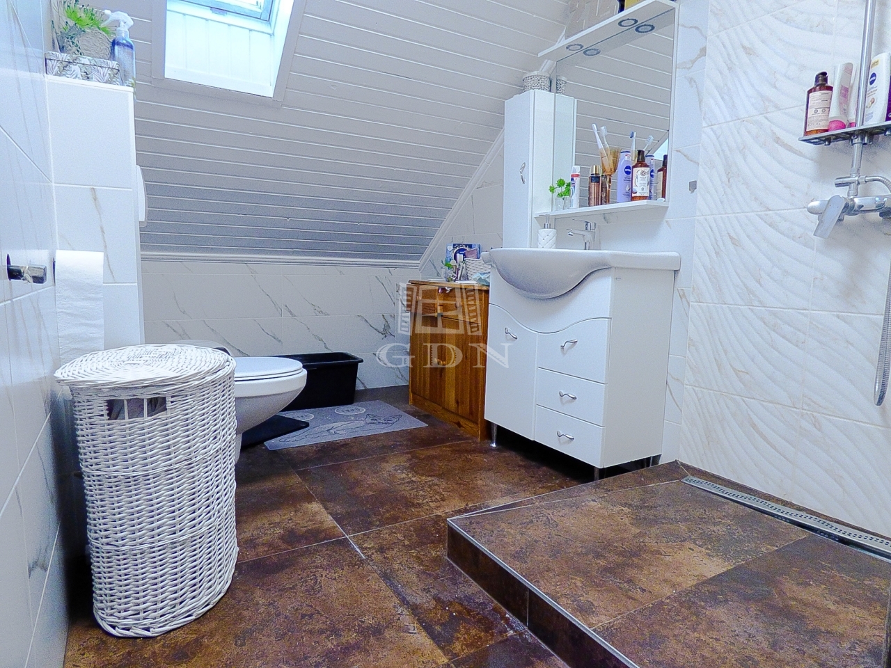 Az emeleten két hálószoba, két loggia (10 nm), fürdőszoba, gardrób és nappali (galéria részen) került kialakításra.