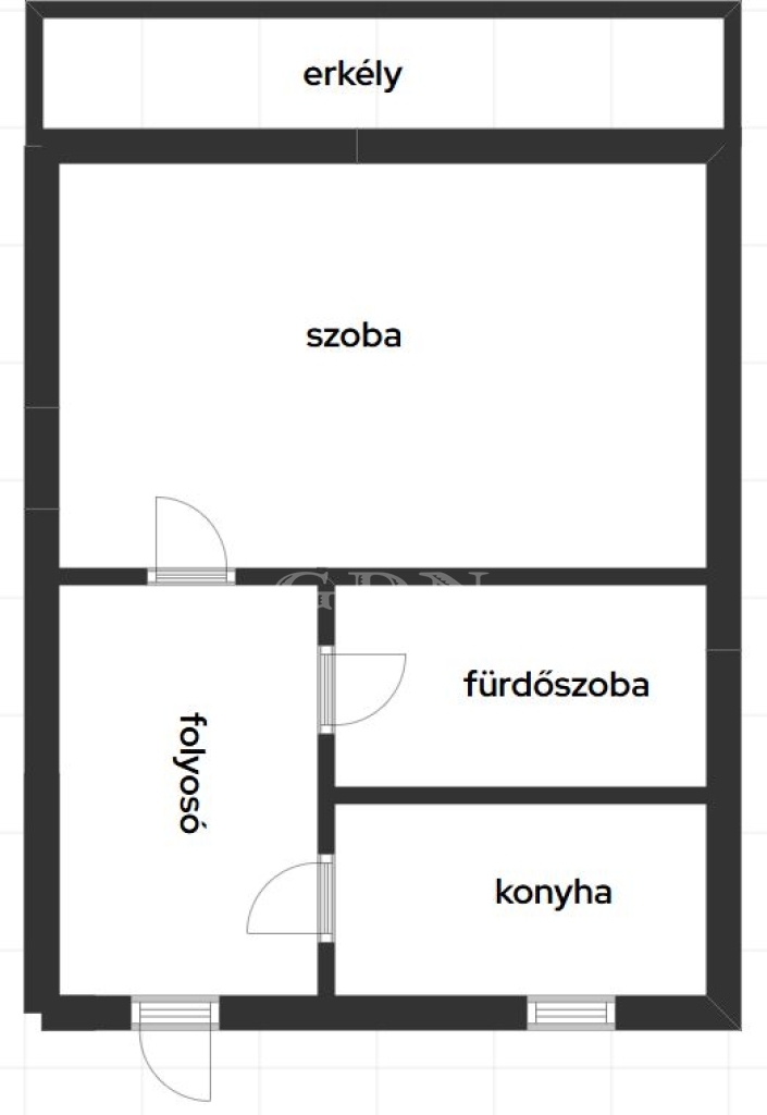 A lakás praktikus elrendezésű: a tágas, világos szoba erkélykapcsolattal bír, mely mellett külön konyha, valamint egy fürdőszoba került kialakításra.