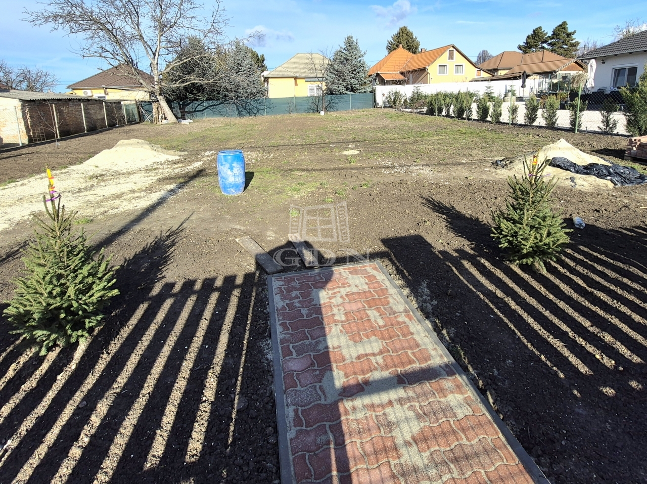 Érd, Postástelep csendes utcájában eladó egy építkezésre előkészített építési telek kész utcafronttal, közművekkel.