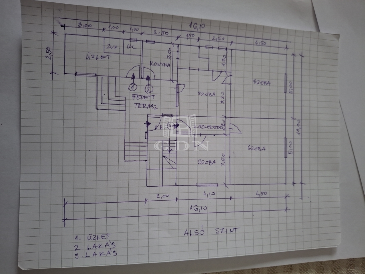 1.lakás: 20 nm-es, földszinti, vizes blokkal rendelkező, teljesen felújítandó rész. Van bővítési lehetőség. Szolgáltatási tevékenységre használták.