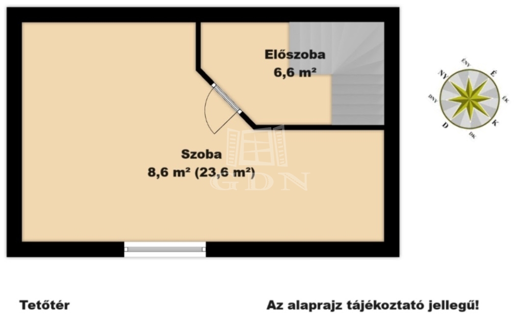 • tetőtéri hálószoba 23,4m2 nettó: 8,6m2