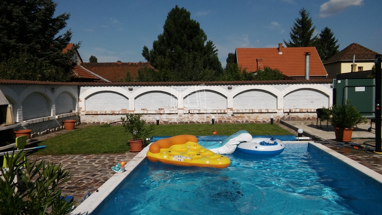 A 712m2-es telken: MEDENCE (6x4m), NAPOZÓ, KEMENCE, 47m2-es GARÁZS, RIASZTÓ, KAPUTELEFON, ELEKTROMOS KAPU, KÚT.
