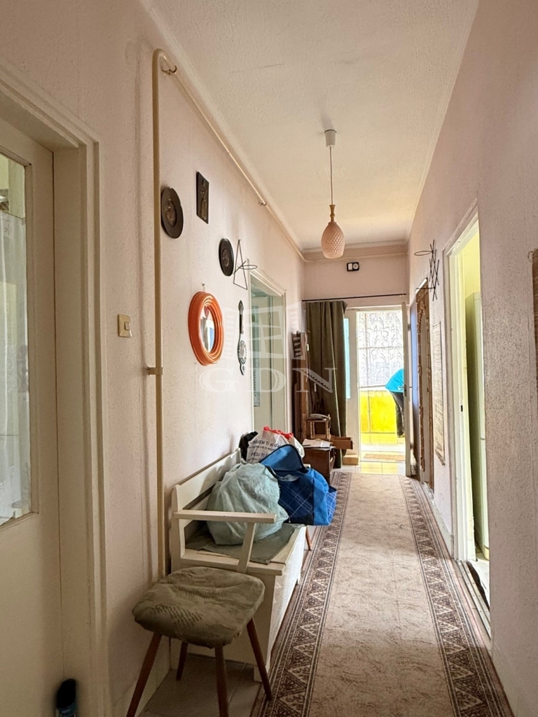 Elosztását tekintve: előszoba, 2 nagyszoba + 1 kisszoba, konyha, étkező, spájz, fürdőszoba, wc, (padlásfeljáró)