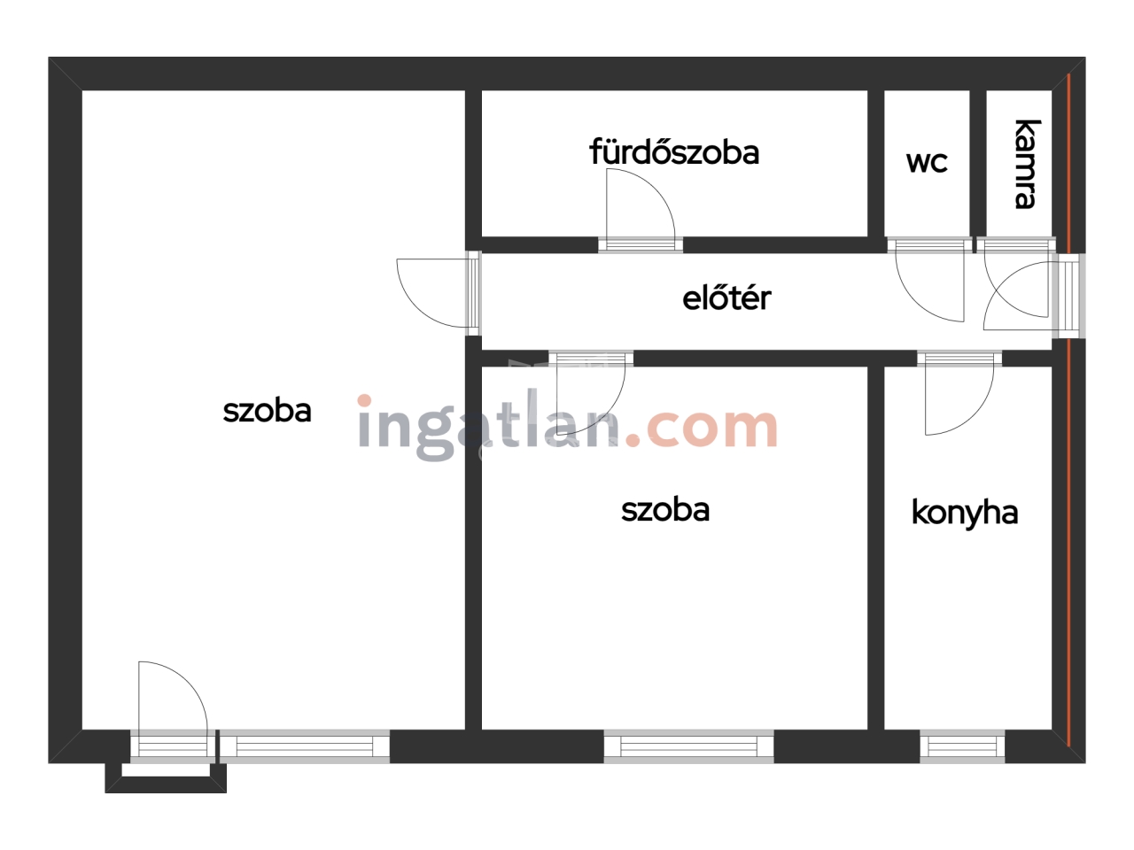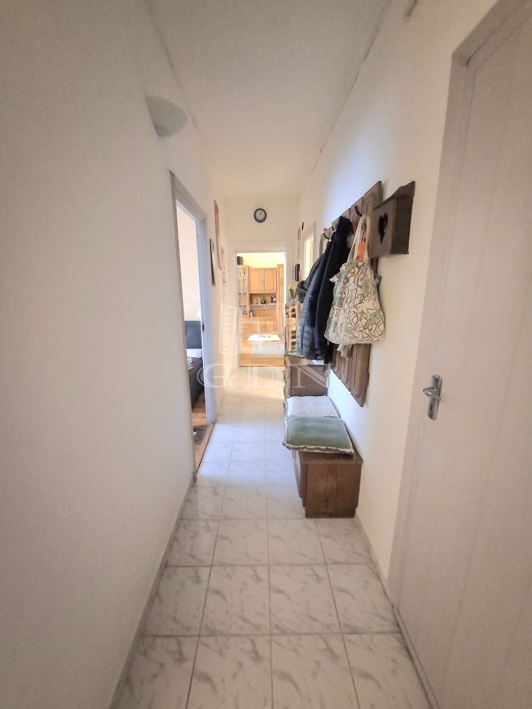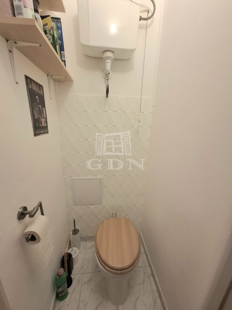 két lakószoba, konyha, közlekedő, fürdőszoba, külön toalett, kamra, az ingatlanhoz 5 nm zárható tároló is tartozik.